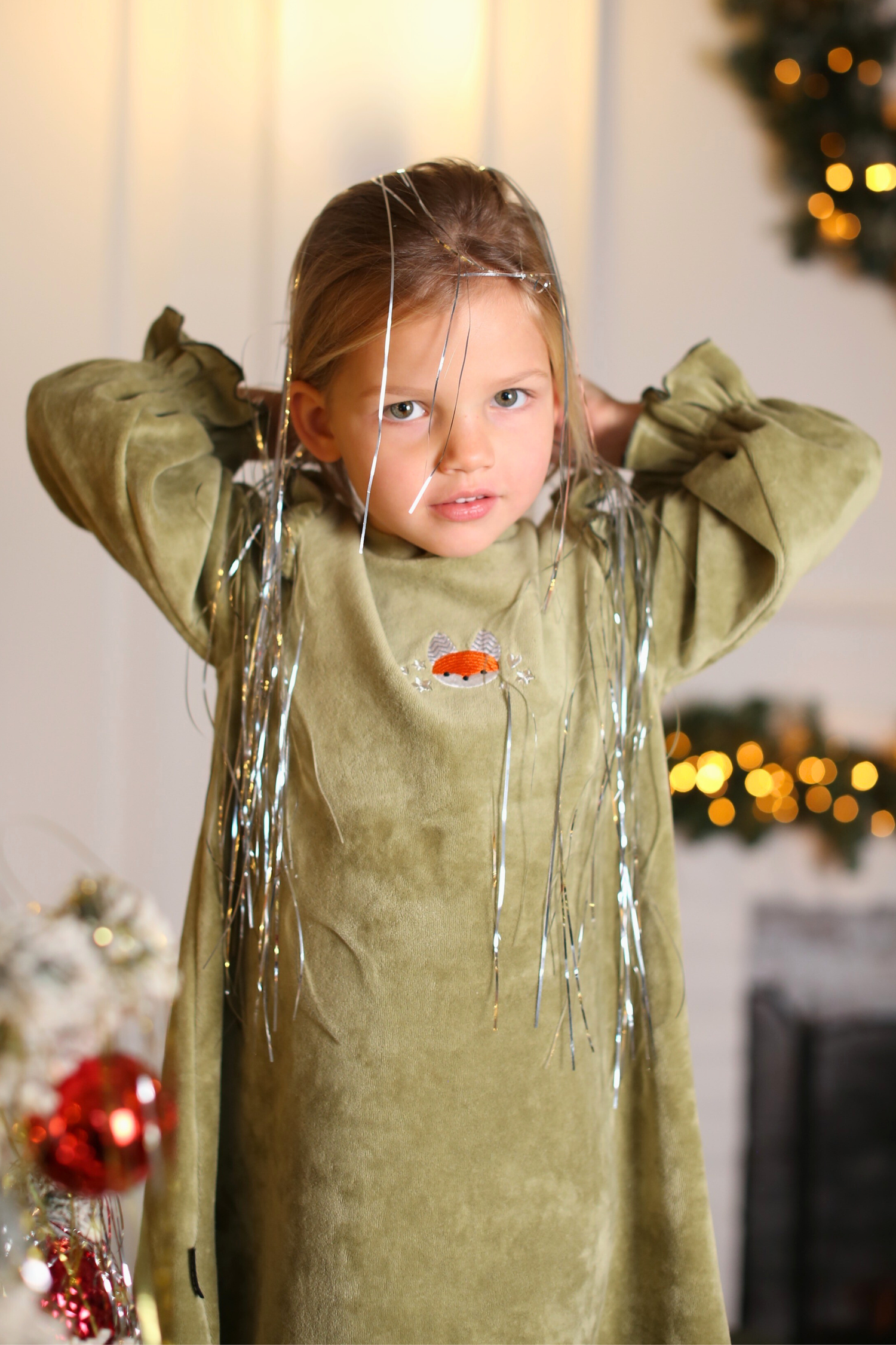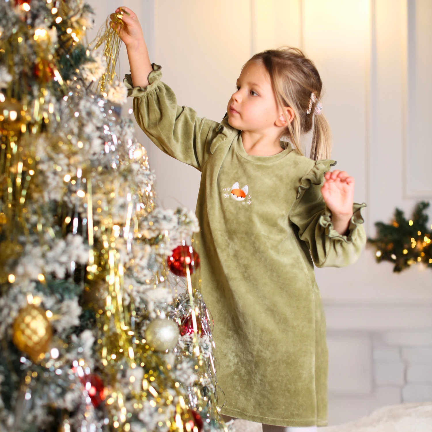 Zaļa samta kleita ar Lapsas izšuvumu